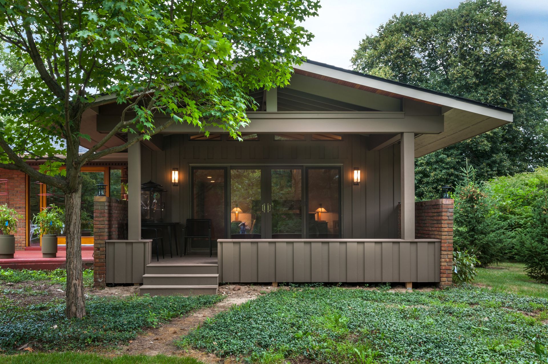 Outside the primary bedroom, a private covered porch was constructed between two existing brick wing walls.
