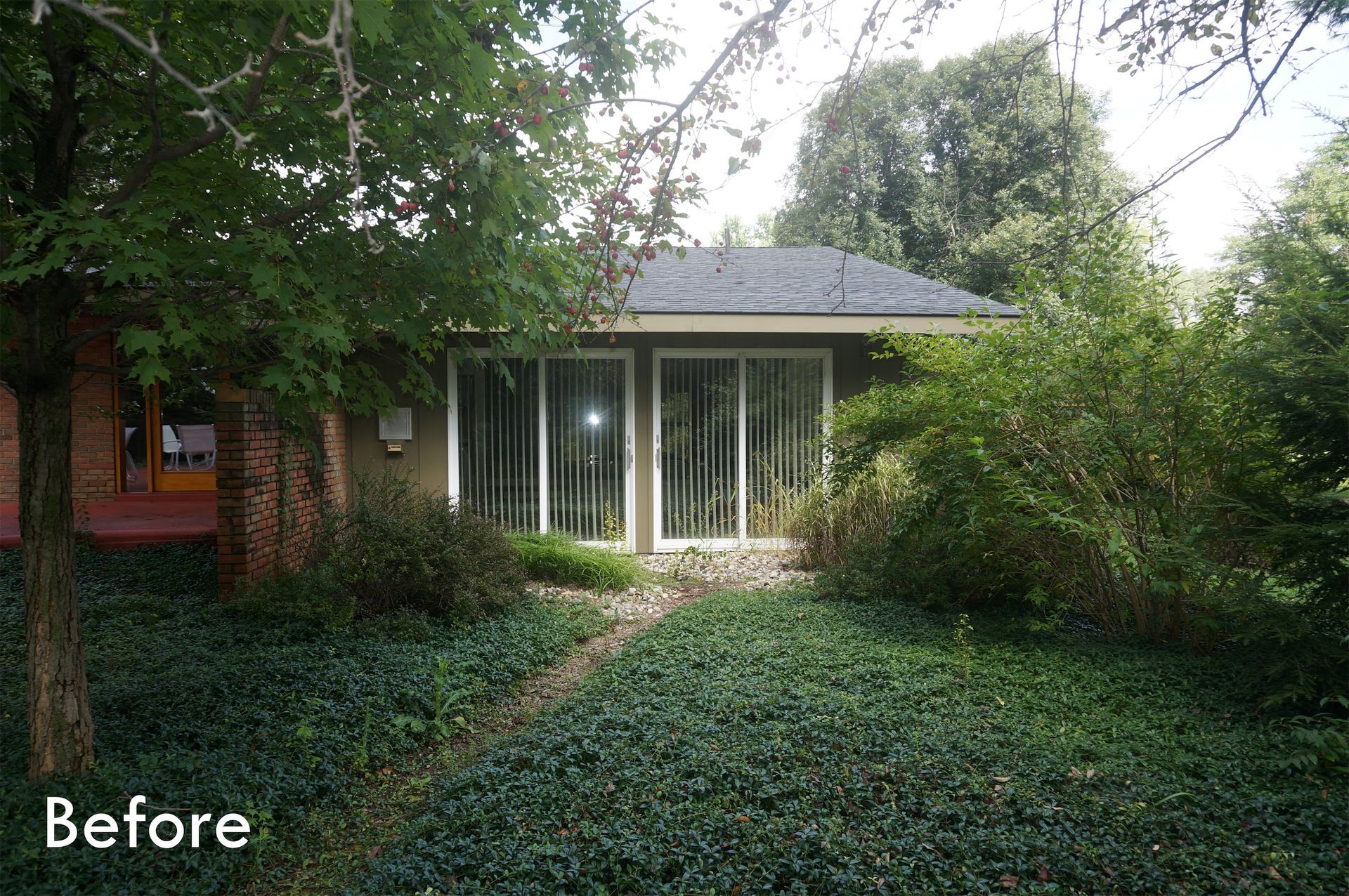 Our clients decided to raise the floor of the bedroom so that there were no interior steps. Because of the existing roof form, this necessitated removing part of the roof and building a new gable over the bedroom, but the new roof allowed Studio Z to design a vaulted ceiling with deep soffits and oak trim to give a Wrightian character to the bedroom.