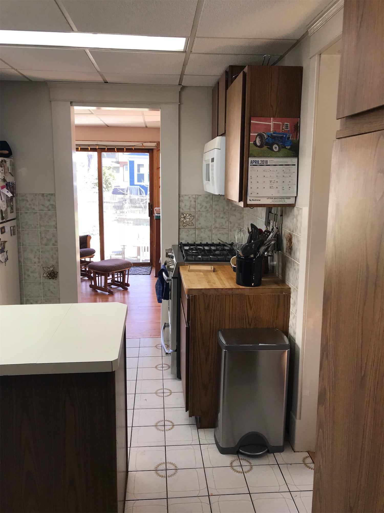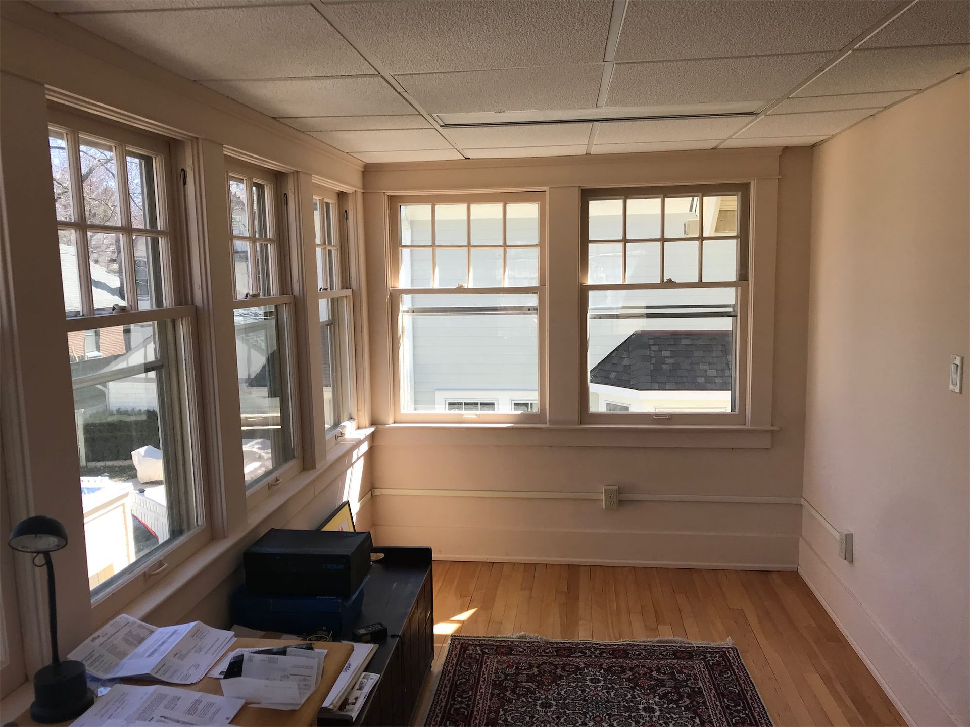 The house had an earlier two-story addition on the back. The lower level of this space was an L-shaped family room, and the second floor was a 7’-5” x 17’-3” sunroom.