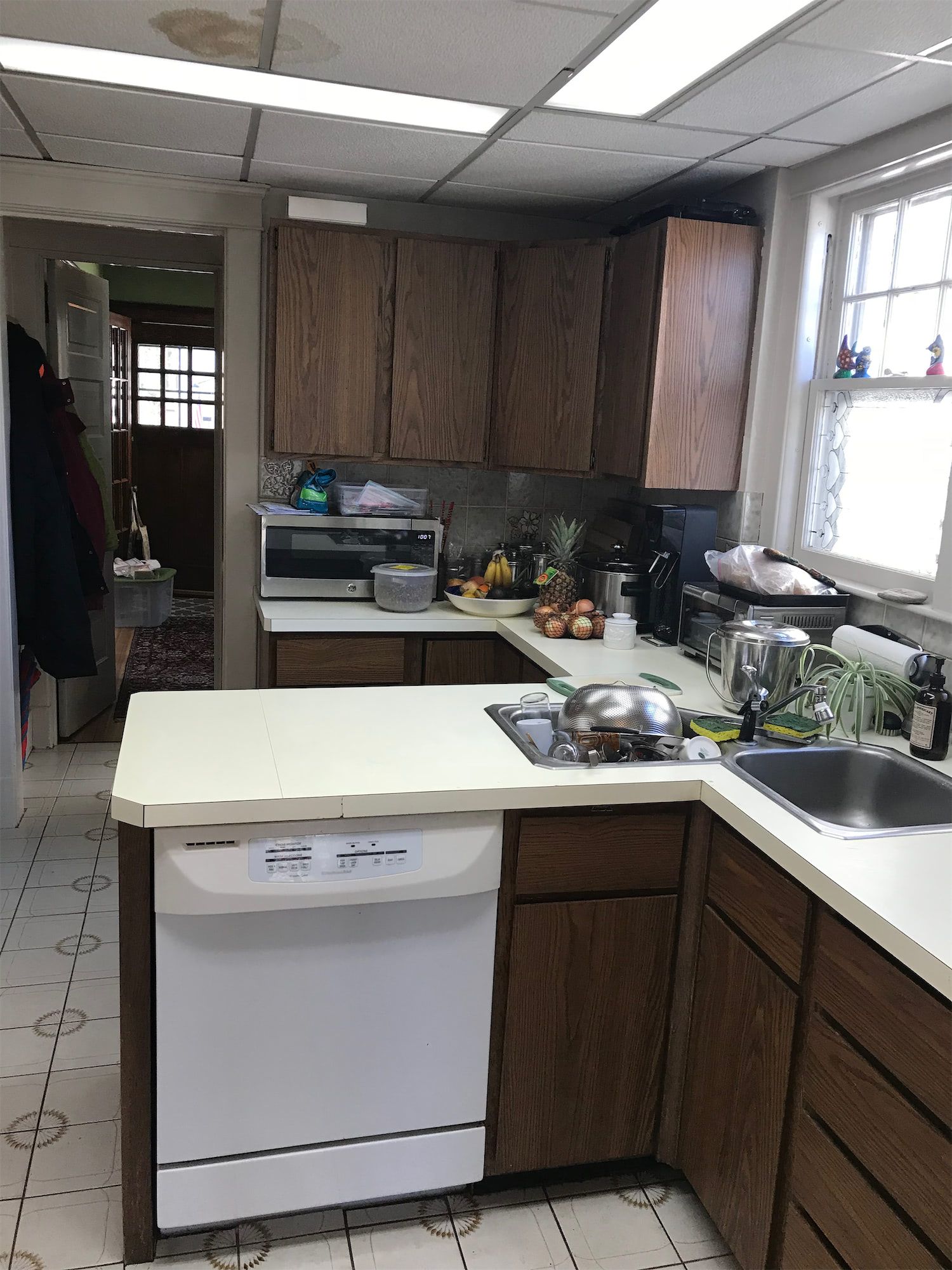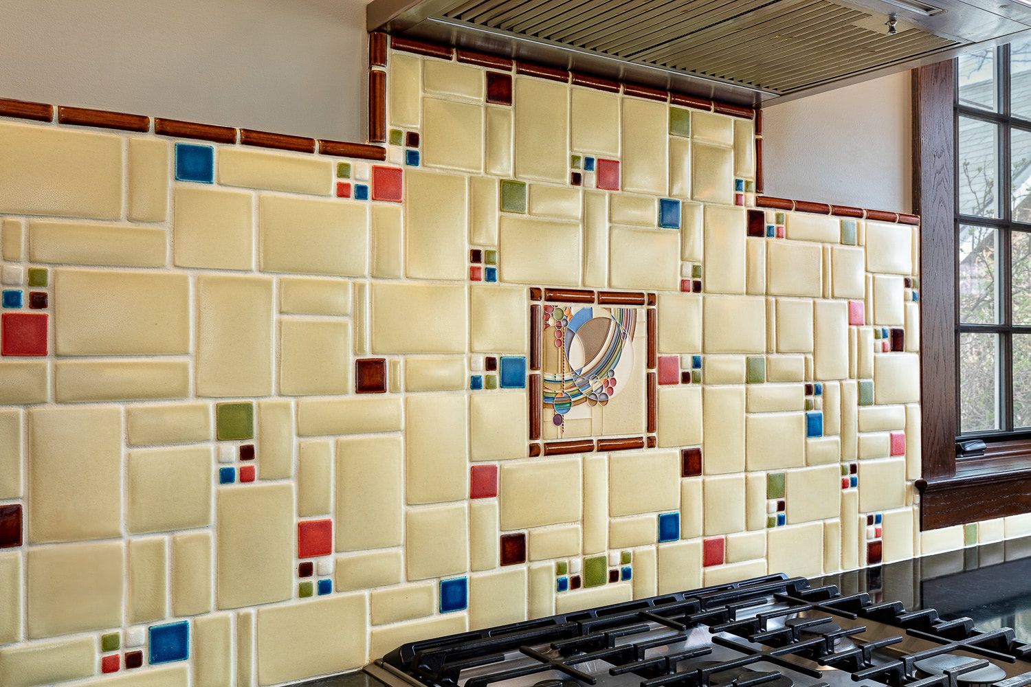 The focal point of the new kitchen is a beautiful Motawi Tileworks backsplash. Because the kitchen is at the back of the house, it provides views of and direct access to the back yard.