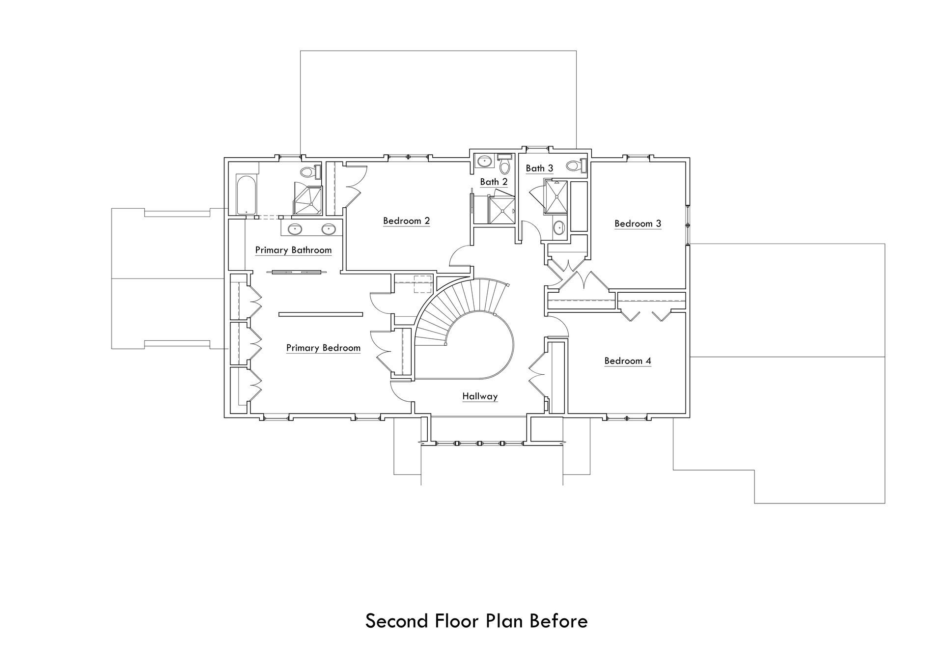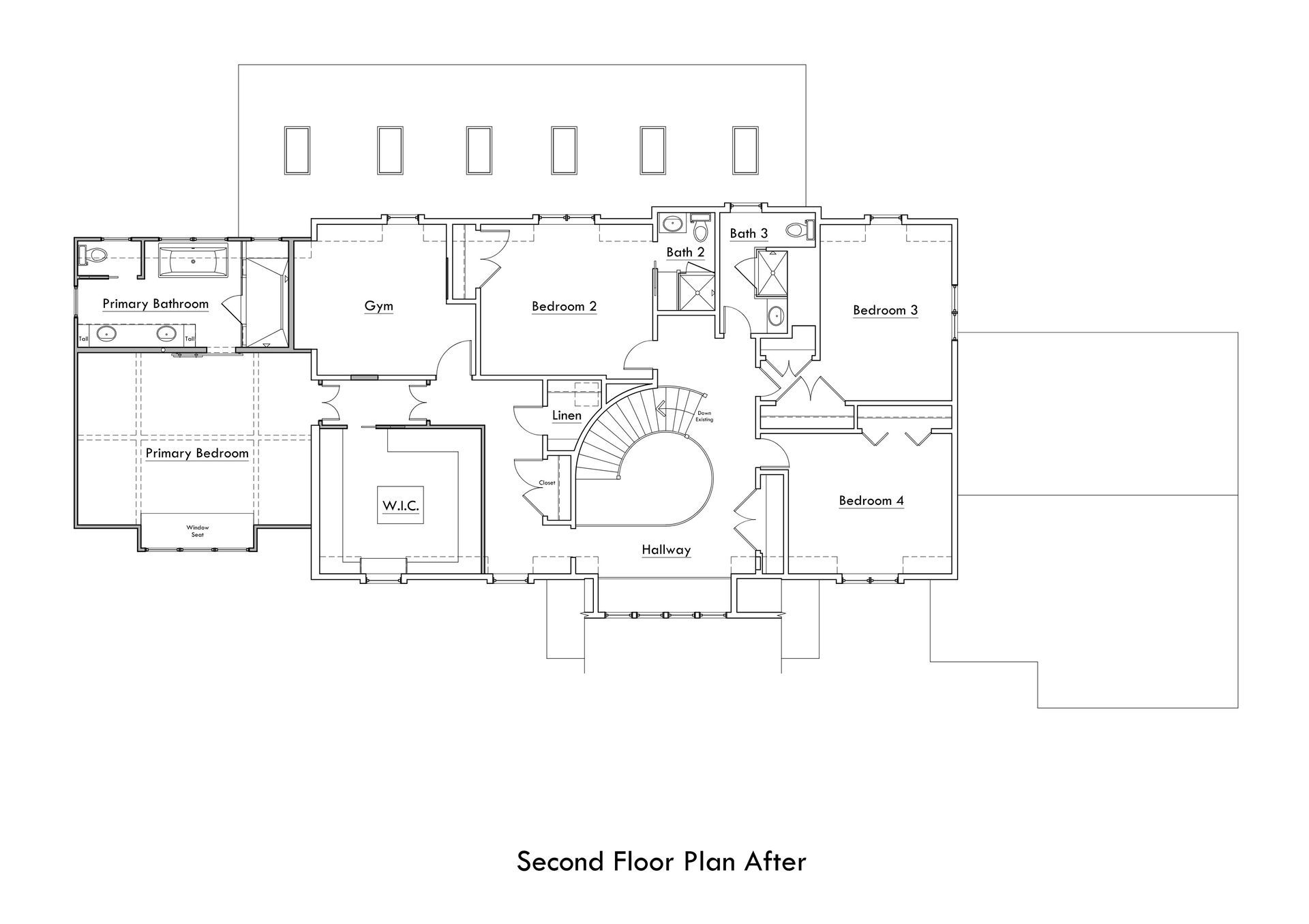 Above the new first floor expansion, the second floor gained space to expand and make greater use of the existing rooms.