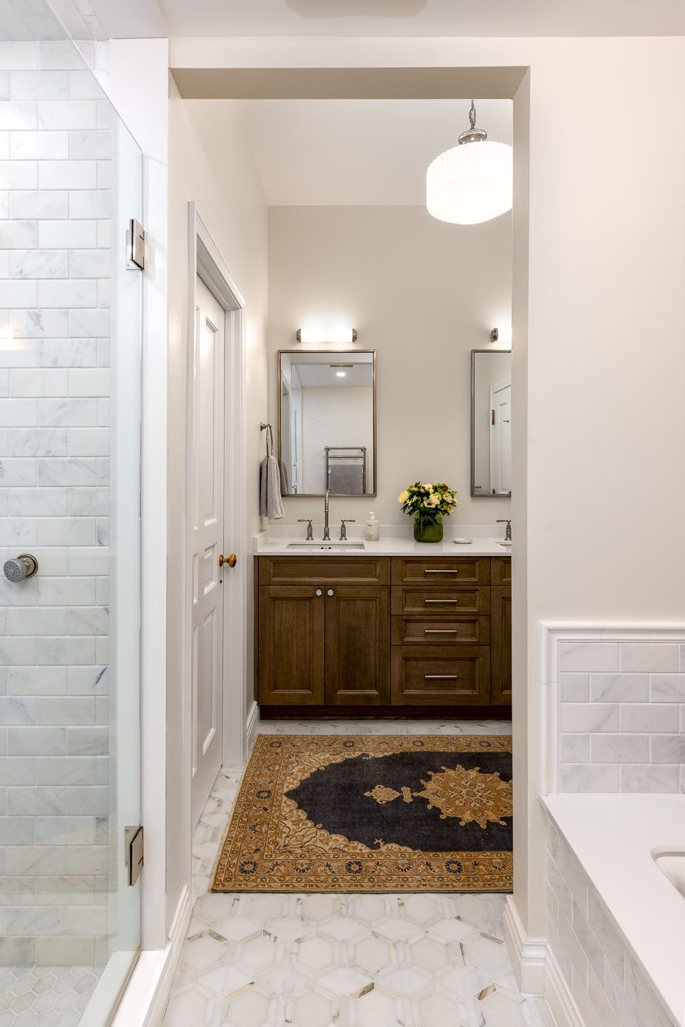One of the couple’s daughters slept in a room on the first floor, but it didn’t have a closet and was across the hall from a very narrow powder room. The only full bathroom on the main floor was part of the primary suite, but it was small and hadn’t been updated in years. The primary suite lacked adequate closet space and privacy.
