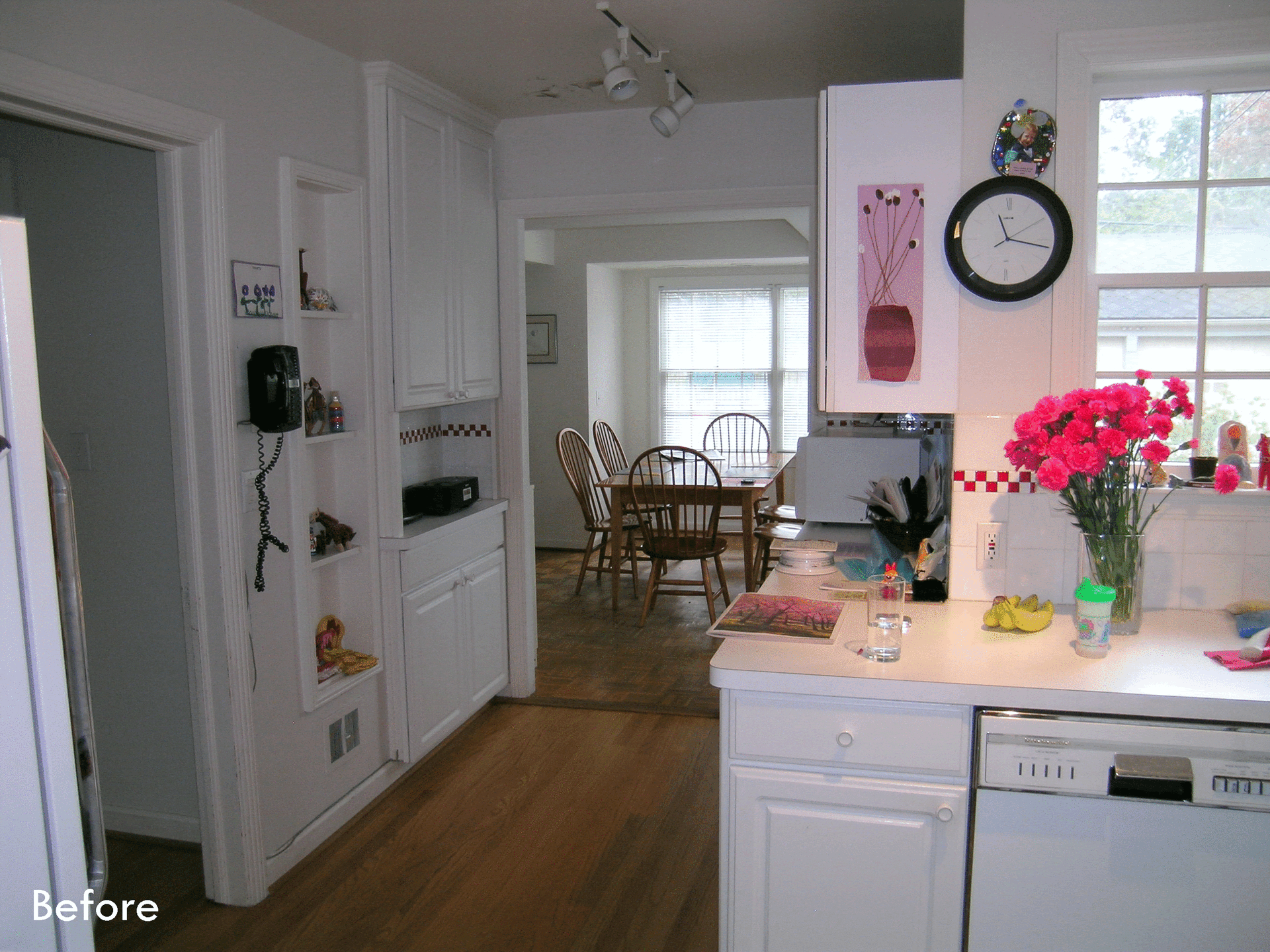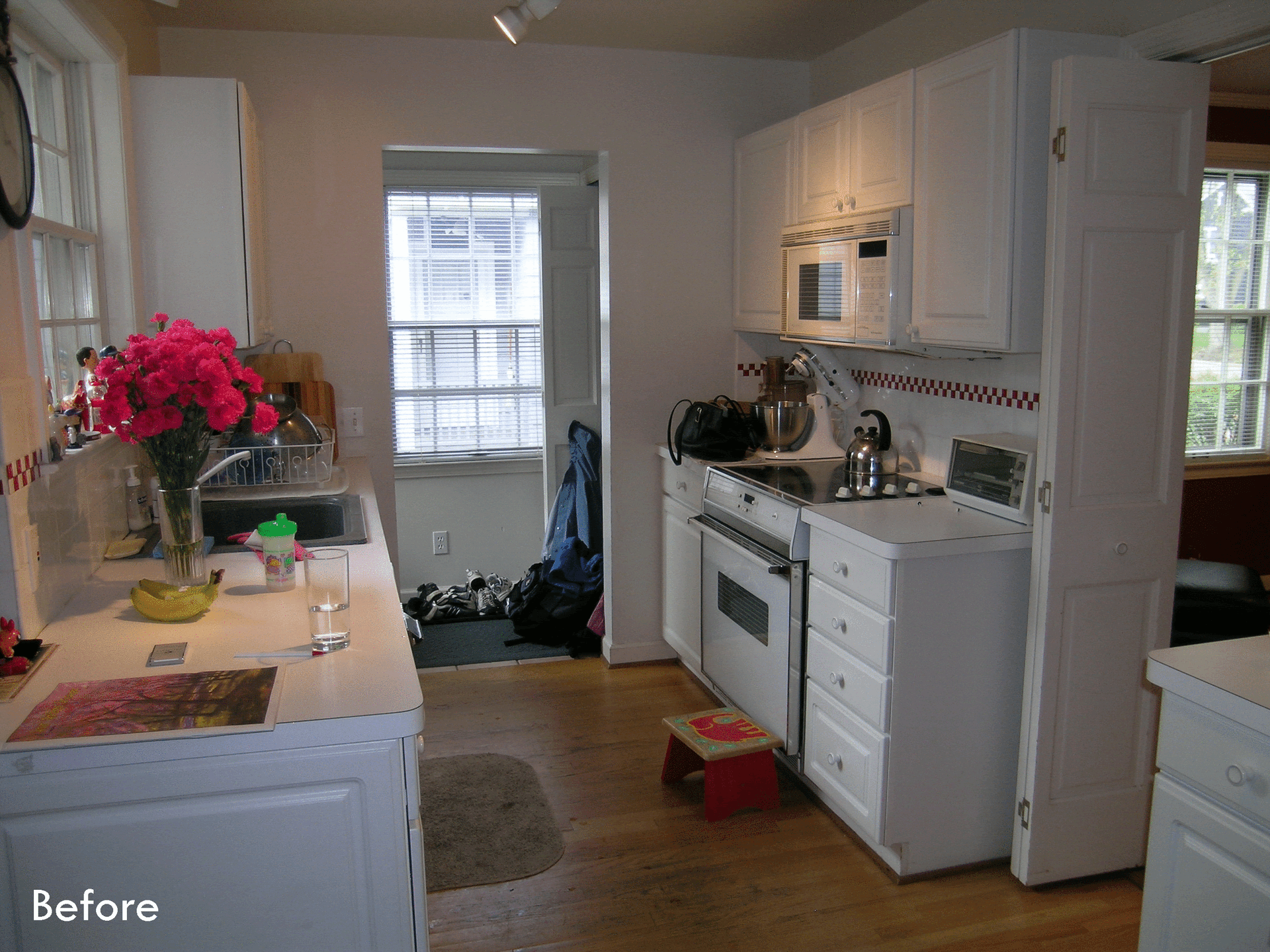 The kitchen was L-shaped, and opened directly to a tiny mud room. When the kids walked through the kitchen with their backpacks and sports equipment, they would bump the knobs on the front of the range and inadvertently turn the burner on. Of course, the owner soon removed the knobs from the stove.