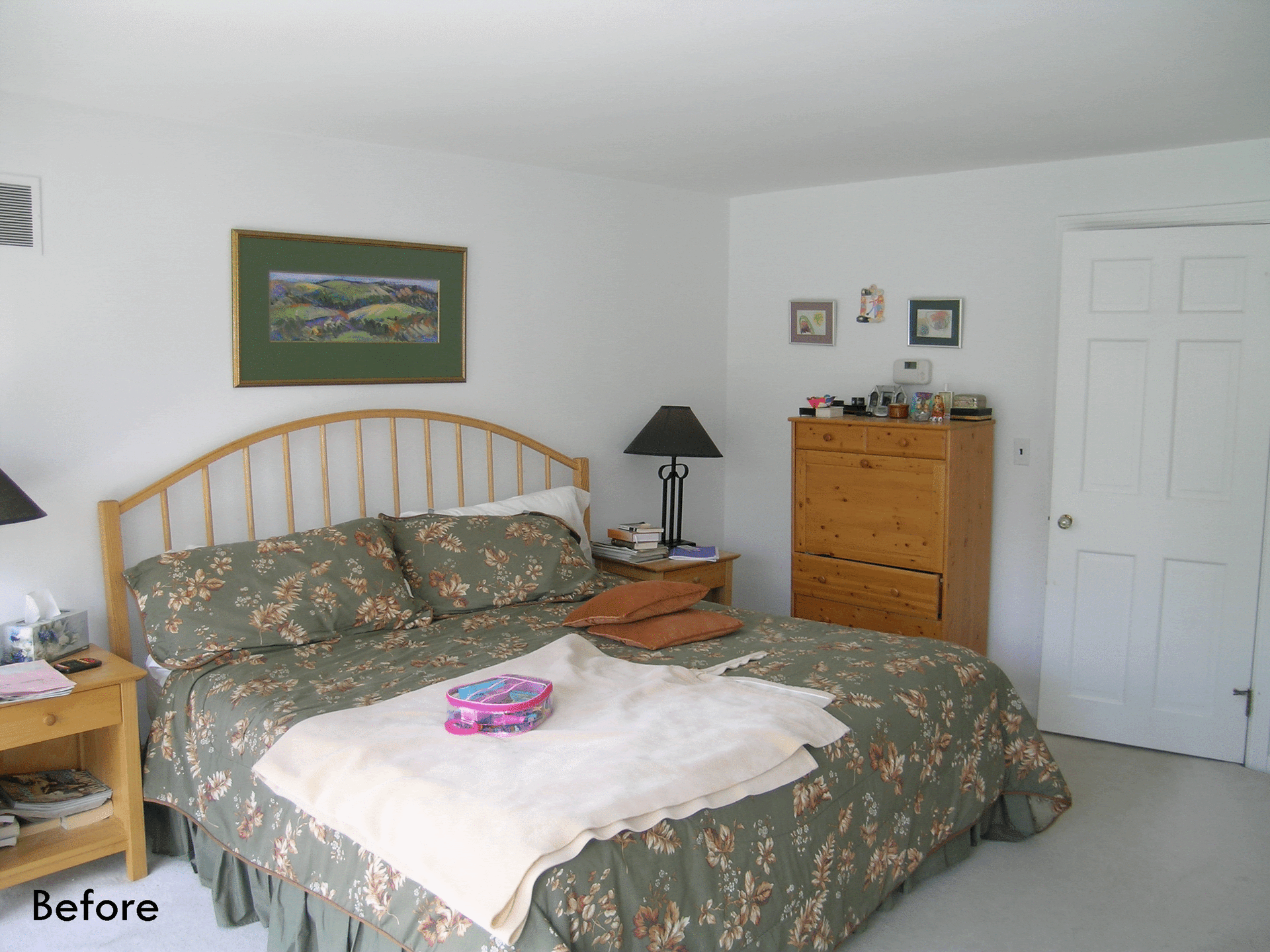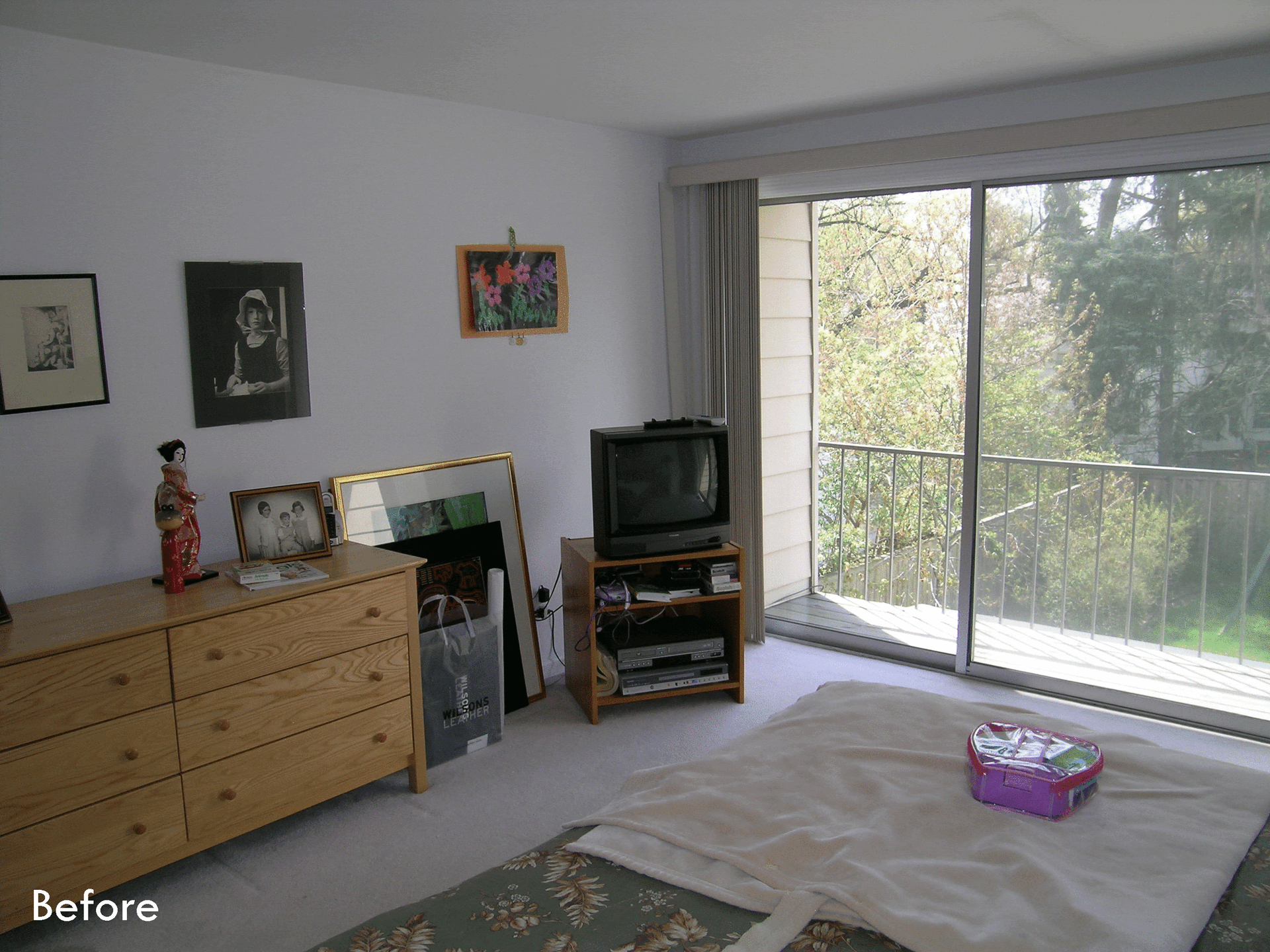 Upstairs, the primary bedroom had a three-panel sliding door at one end that opened to a tiny balcony, which made the room feel like a hotel room. The primary bath was tiny and the fixtures were very dated. The roof over the primary bedroom was almost flat and the owners reported that it leaked frequently. Finally, the old addition was built on a crawl space, so the home’s basement was fairly small.