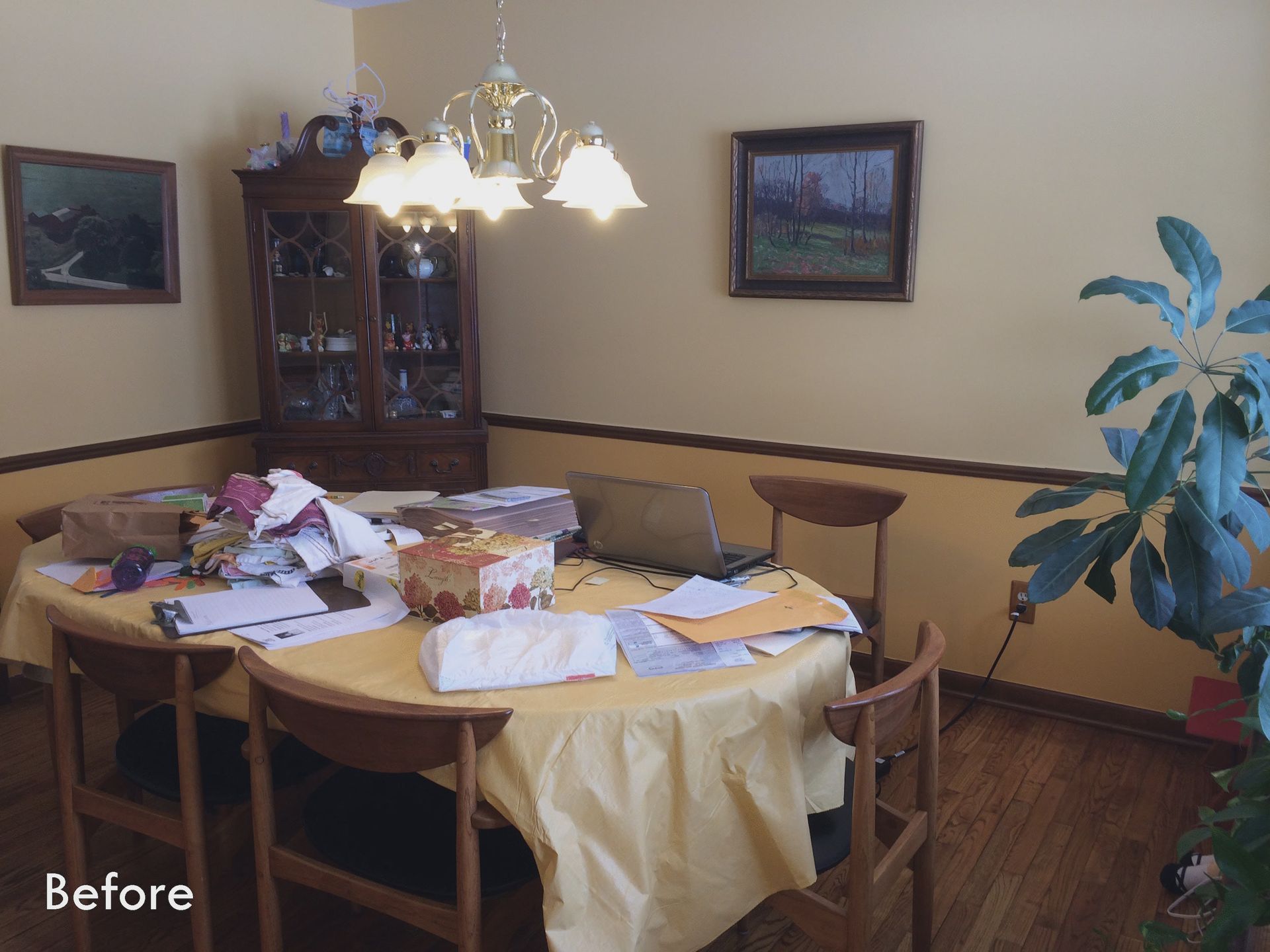 - An existing formal dining room is repurposed to become a den, which can be used as a first-floor bedroom if needed.