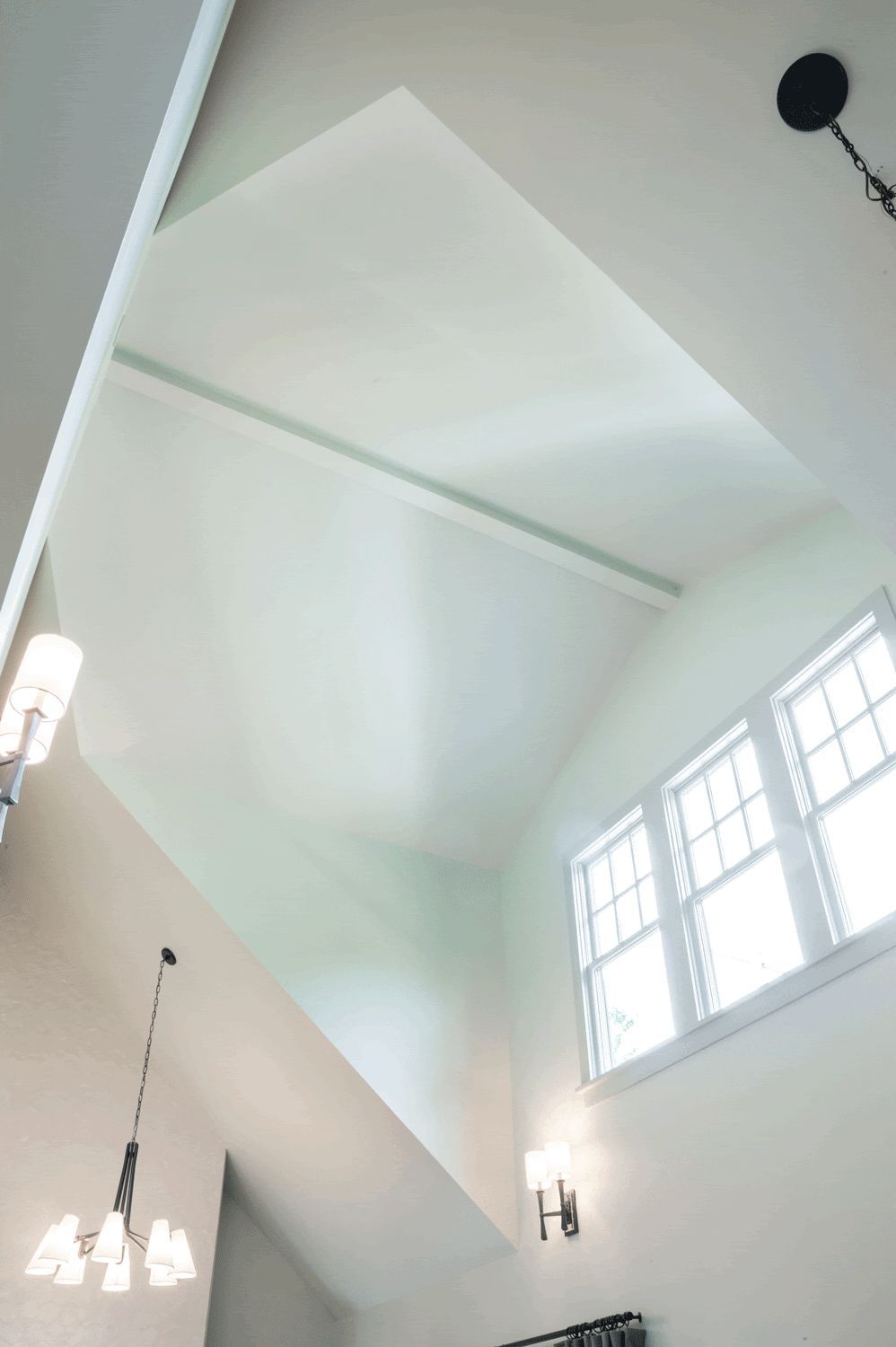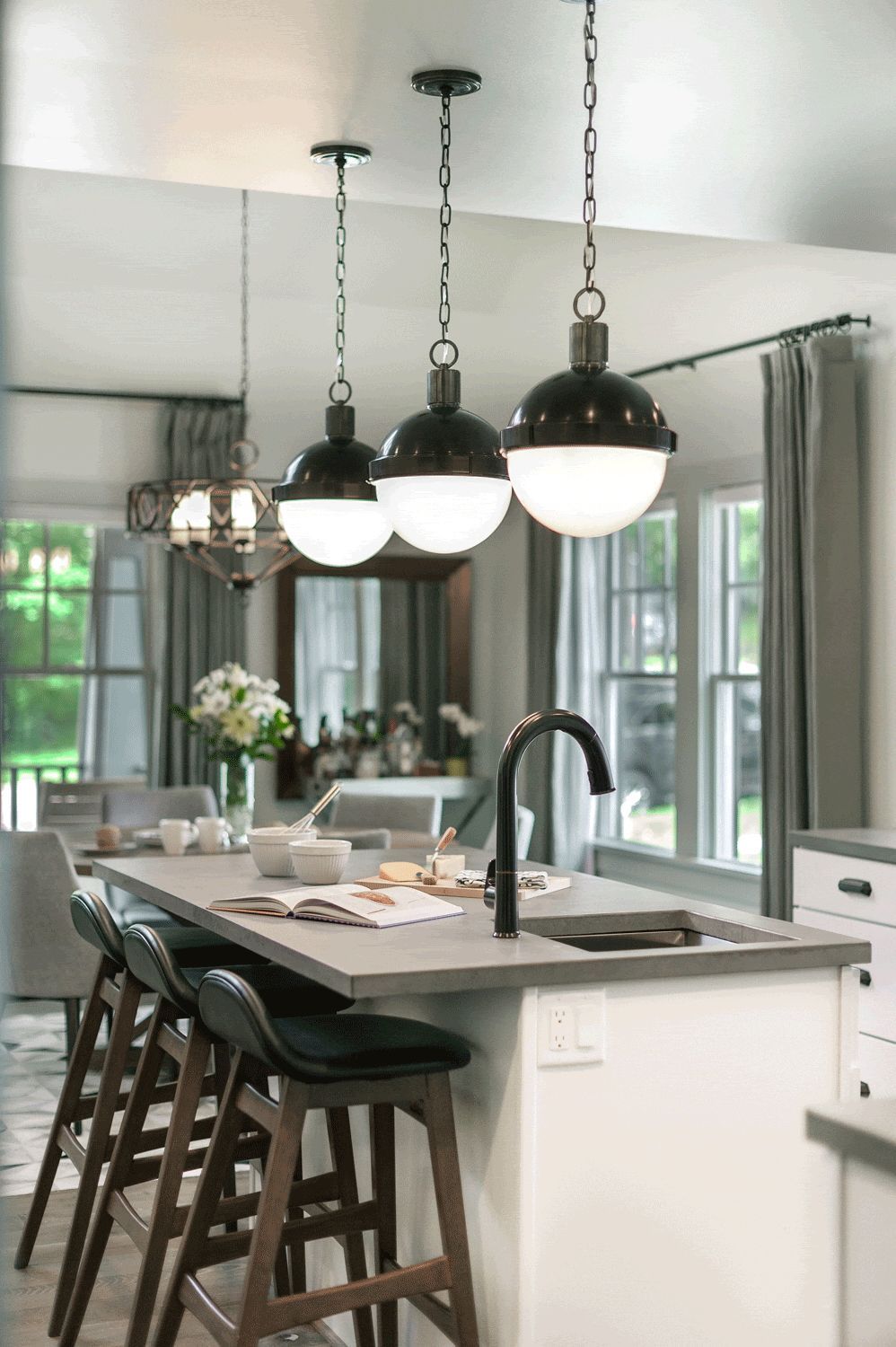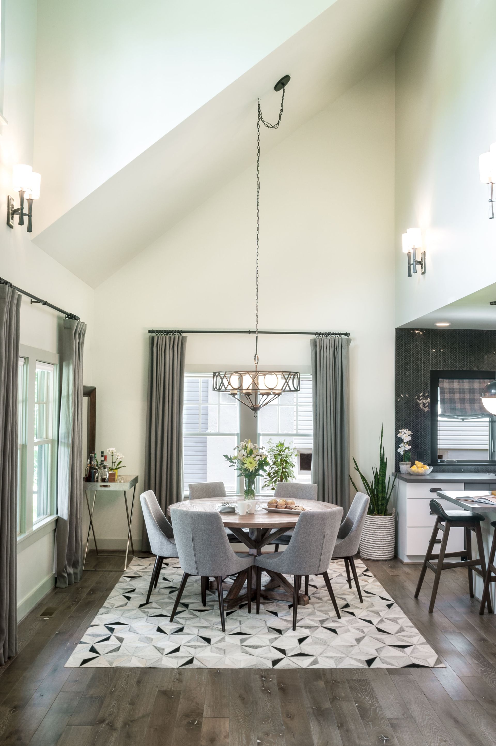To maximize the first-floor footprint, Studio Z’s plan gutted the space and removed the majority of the interior walls, making room for constructing a new L-shaped, open floor plan with kitchen, dining and living spaces that flow from one to the next and views from end to end of the house, making the entire home feel larger.