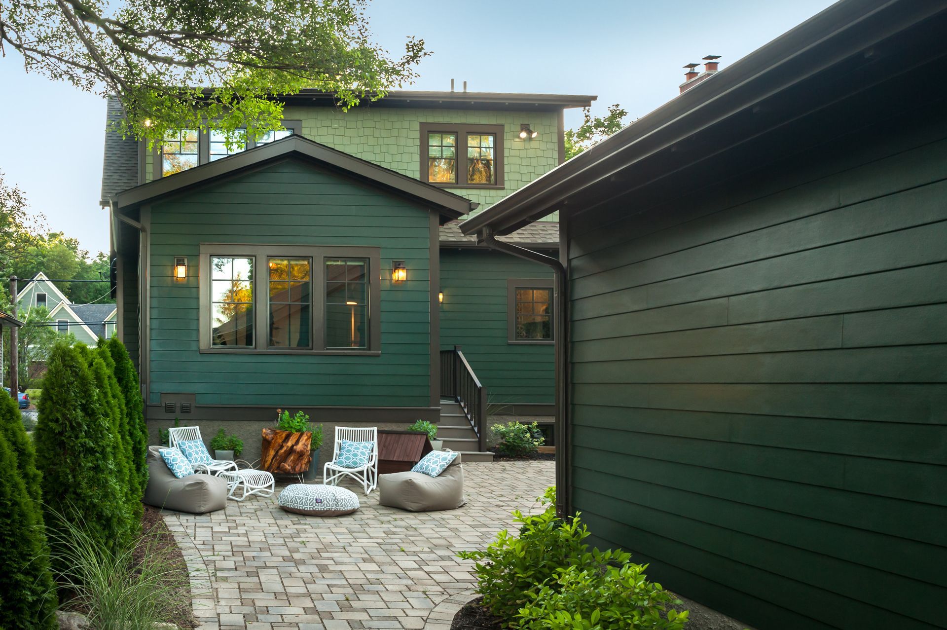 - A freestanding four-car garage was torn down and replaced with a two-car garage and a large screened porch