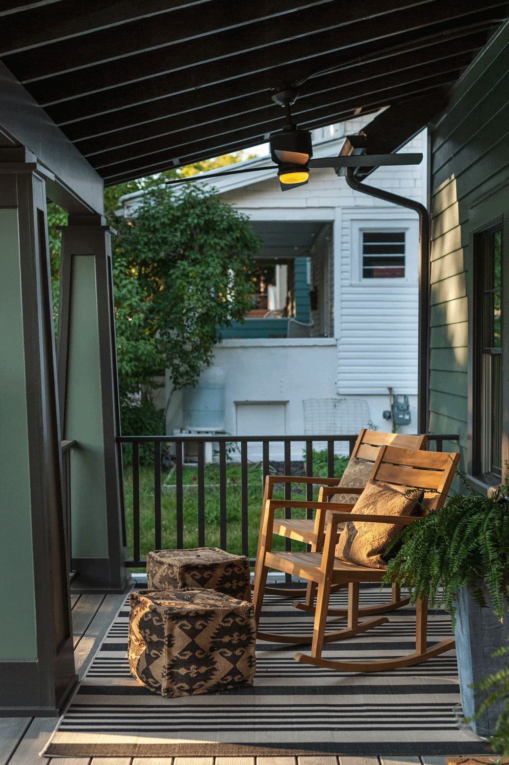 - A new front porch replaces the old covered stoop