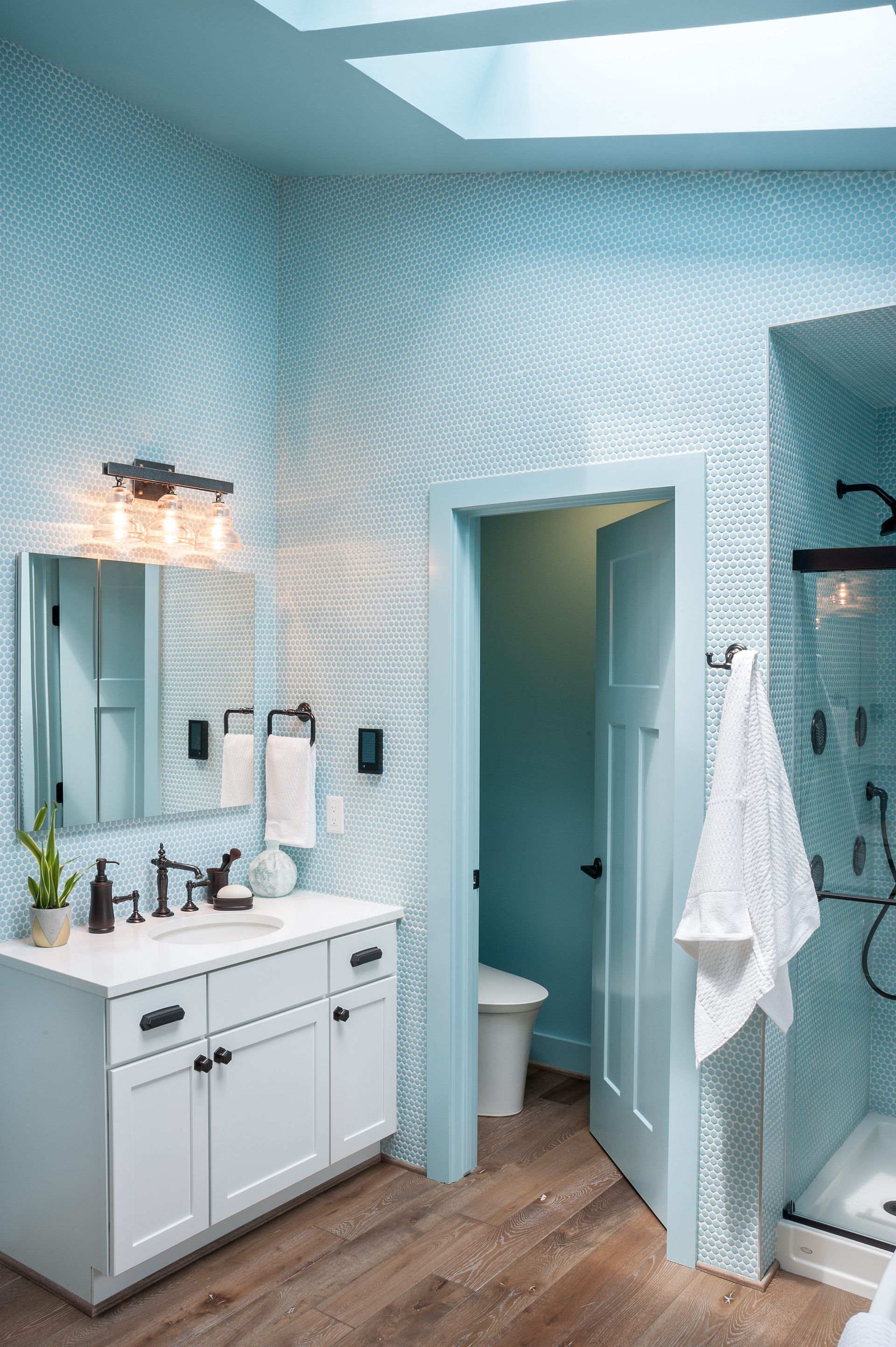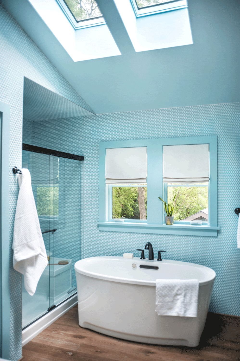 The lot size and the home’s existing small structure presented challenges, but Studio Z was able to accomplish HGTV’s goals for the home including an additional primary suite. In order to add the second suite, Studio Z opted to design ‘up’, adding a second-floor dormer containing a bedroom suite with its own full bath, complete with shower and floor-mounted tub.